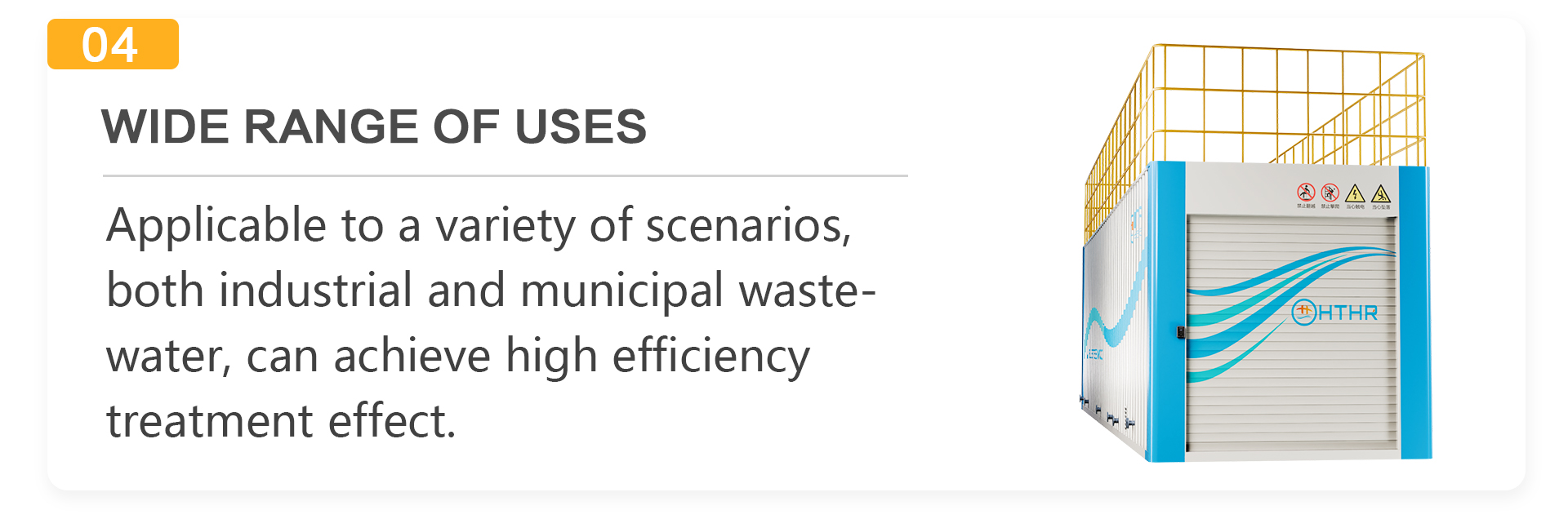 Product application scope:Breeding sewage, hospital sewage, food sewage, industrial sewage, washing sewage, catering sewage, etc.
